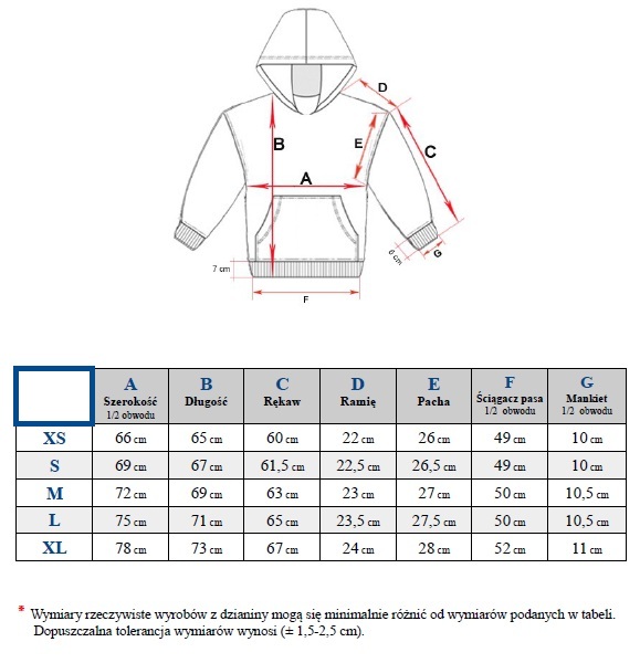 Przed zamówieniem proszę porównaj rozmiary swoich bluz z naszą rozmiarówką. Rozmiary podane są dla bluzy leżącej na płasko.