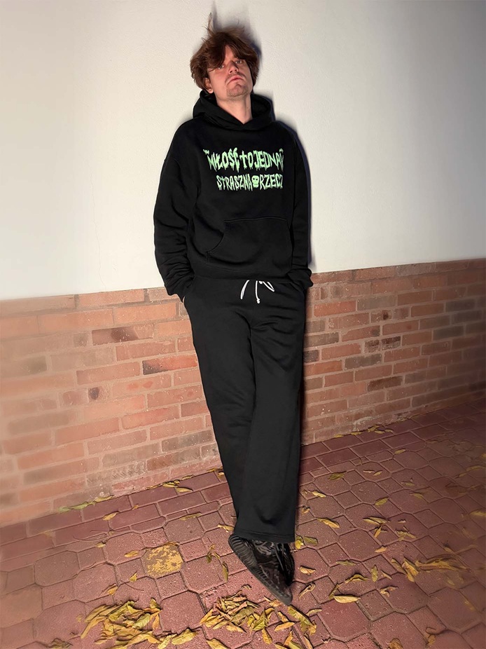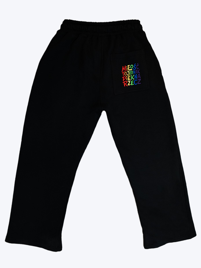 Prezentujemy Wam świetnej jakości spodnie dresowe "Miłość to jednak piękna rzecz" zaprojektowane przez Awizo i Lakarnum.