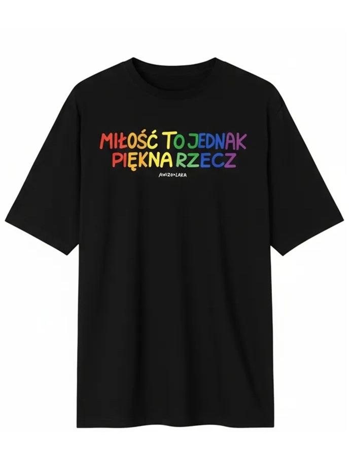 Prezentujemy Wam świetnej jakości T-shirt "Miłość to jednak piękna rzecz" zaprojektowany przez Awizo i Lakarnum. Nie dość, że koszulka jest uszyta w całości w Polsce to jeszcze z materiału produkowanego w łódzkiej fabryce. Materiał ma skład 100% bawełna. Krój luźny, duży oversize. Kupujesz koszulkę wysokiej jakości i do tego wspierasz polski biznes.