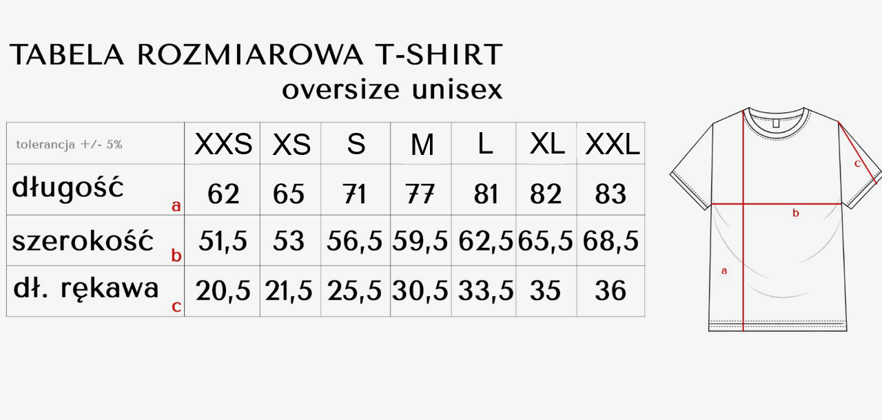 Koszulki są bardzo duże więc przed zamówieniem proszę porównaj rozmiary swoich ubrań z naszą rozmiarówką - zakładka poniżej.